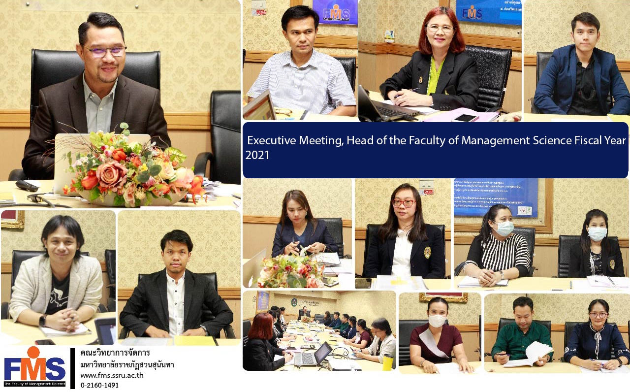 - On December 2, 2020, at 1:30 p.m., Faculty of Management Science Suan Sunandha Rajabhat University Organized a meeting of the Chief Executive Officer for the fiscal year 2021. By Asst. Prof. Dr. Somsak Klaysung, Dean of the Faculty of Management Science, chair the meeting along with the Executive Board, Deputy Dean, Head of the Department, Head of all Departments join a meeting about operational policy and administration within the Faculty of Management Science, including operating plans annual fiscal year 2021 and other related agenda at the Ruamjai Management Meeting Room 1, Faculty of Management Science.