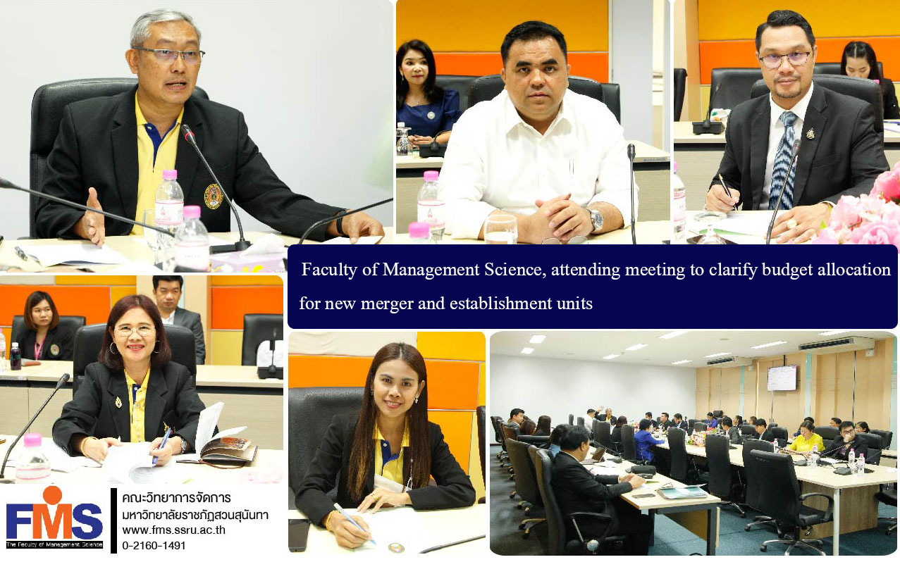 On December 14, 2020 at 1:30 p.m. Asst. Prof. Dr. Somsak Klaysung, Dean of the Faculty of Management Science, along with Asst. Prof. Ladda Hirunyava, Deputy Dean for Planning and Quality Assurance. And Ms. Autjira Songjan, finance and accounting scholar attends a meeting to clarify budget allocation for new merger and establishment units. By Assoc. Prof. Dr. Witthaya Mekhum, Acting Vice President for Planning and Quality Assurance Chair the meeting In conjunction with Asst. Prof. Dr. Komsan Somanawat, Acting Vice President of Nakhon Pathom Campus, attended the meeting. On the issue of monitoring the progress of the merger of agencies and establishing new units and clarified the budget allocation for the new merger and establishment unit at the Kaew Chao Chom meeting room Logistics and Supply Chain Building 2, 4th Floor, Suan Sunandha Rajabhat University Nakhon Pathom Campus.