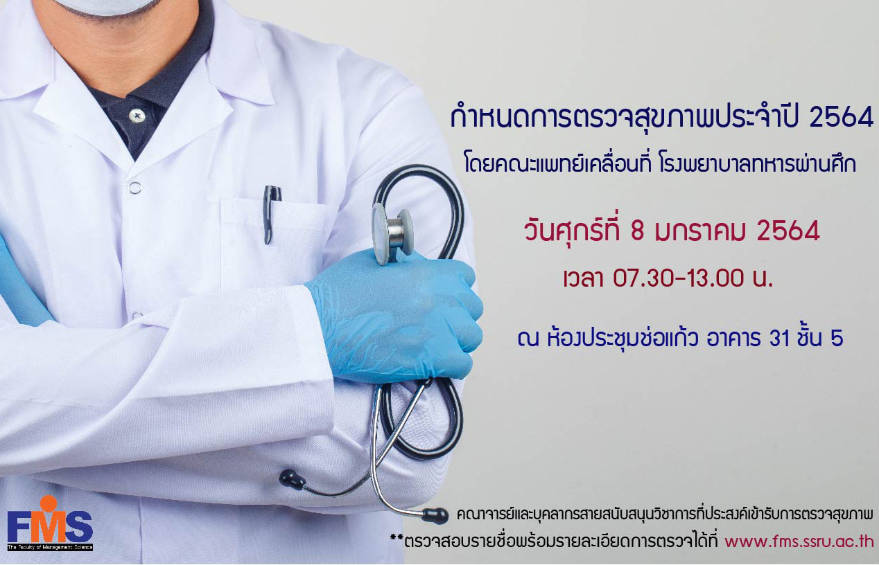 Publicize the schedule of the annual health check-up service in 2021 with the veterans hospital On Friday, January 8, 2021, at 7:30 a.m. onwards at Chor Kaeo Meeting Room, Building 31, Floor 5. http://bit.ly/37FxJsD