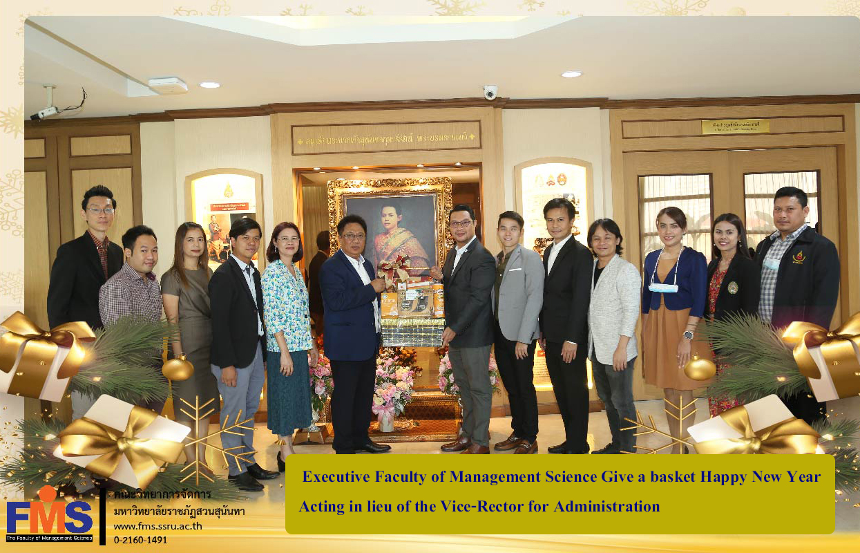 On December 23, 2020, the Faculty of Management Science is led by Assistant Professor Dr. Somsak Klaysung, Dean and Executive Committee, Deputy Dean, Lecturer, Head of the Dean's Office Academic Support Personnel Met and gave a New Year's gift basket to Assistant Professor Dr. Preecha Phongpheng, Representative Vice President for Administration On the occasion of the new year and welcome the new year 2021 at the office of the president, 5th floor, Suan Sunandha Rajabhat University.