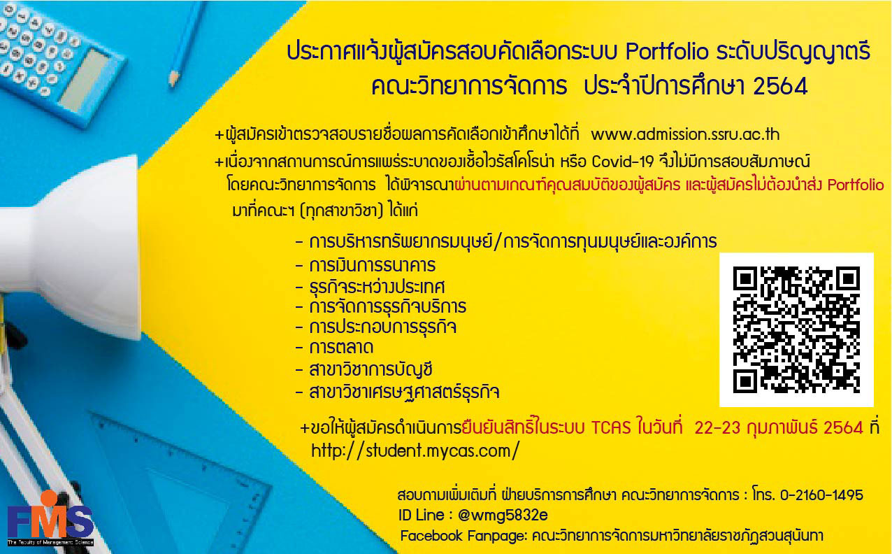 For more information, contact Facebook Fanpage: Faculty of Management Science. Suan Sunandha Rajabhat University