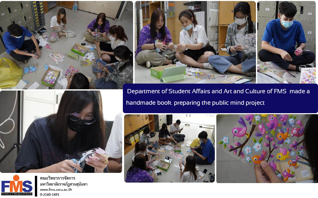 Student club and student Affairs and Arts and Culture Department, Faculty of Management Science, Suan Sunandha Rajabhat University make a hand made book. To prepare for the organization of a public mental development project Faculty of Management Academic Year 2020 "DIY Handmade Book for Underprivileged Children" to be held on Saturday, February 27, 2021.
