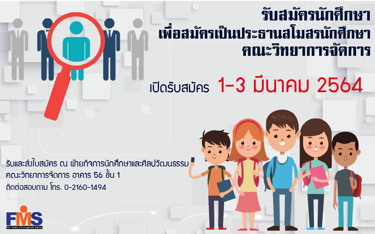 Therefore would like to publicize inviting students in year 2,3,4, Faculty of Management Join to apply for selection as the student club president. Open for applications from 1-3 March 2664.