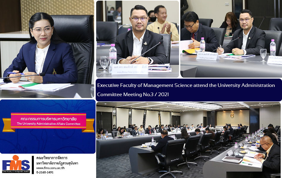 On March 8, 2021 at 9:30 am Assistant Professor Dr. Somsak Klaysung, Dean of the Faculty of Management Science. Attended the 3rd meeting of the University Executive Committee / 2021 by Associate Professor Dr. Chutikarn Srivibool, President of Suan Sunandha Rajabhat University Is the chairman of the meeting at the meeting room of Suan Sunandha Rajabhat University Building 31, 5th floor.