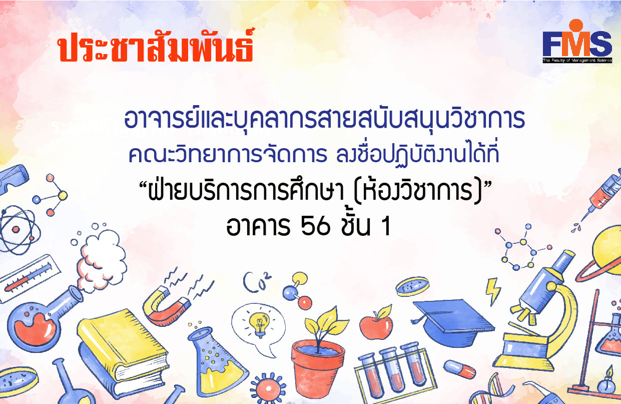 Public relations: Office of the Dean Faculty of Management Continue to renovate the Dean's office. And temporarily relocated Therefore would like to publicize to all faculty members and academic support personnel Sign the work at Education Service Department (Academic Room) Building 56, 1st Floor, from March 19, 2021 onwards.