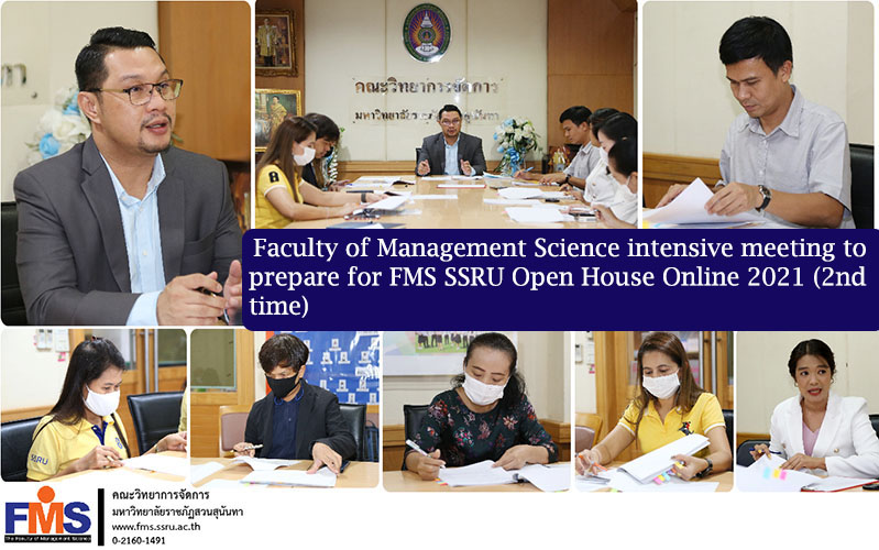 On March 22, 2021 at 1:30 p.m. Faculty of Management Science Suan Sunandha Rajabhat University Arrange a preparatory meeting FMS SSRU Open House Online 2021 (2nd time) event organized by Assistant Professor Dr. Somsak Kaisang, Dean of the Faculty of Management Science. Chair the meeting Together with Prof. Piti Manat Bunlue, Deputy Dean for Administration, Lecturer Dr. Pongsawee Supanonth, Deputy Dean for Student Affairs. In order to clarify the preparation guidelines for the FMS SSRU Open House Online 2021 activities to be held on March 31 - April 1, 2021, there was a committee to conduct the event. Office of the Dean Publicist Attend the meeting at the student club meeting room Faculty of Management Science.