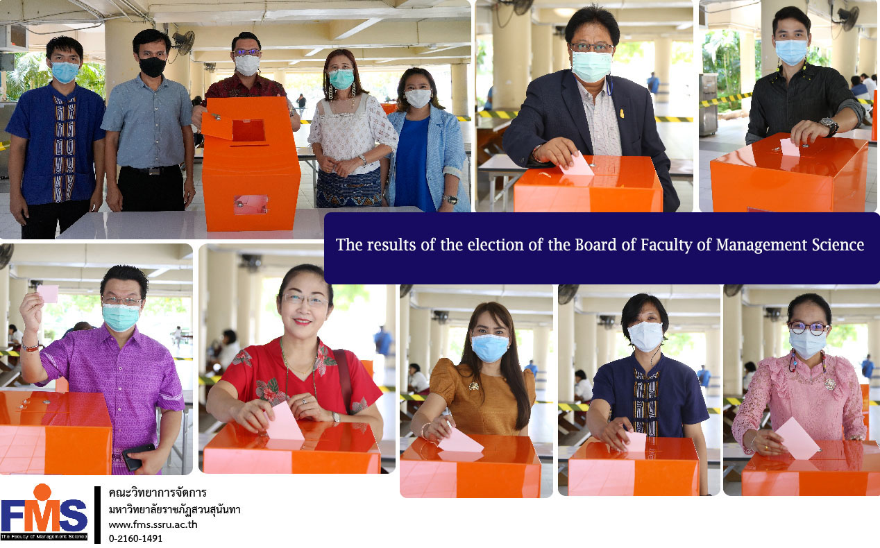 Election Results of the Faculty of Management Science Committee Types of full-time faculty members or employees who are not executives On Friday March 26, 2021 at the activity area under Building 57, Faculty of Management Science There were 62 people who came to vote. The elected persons were Assistant Professor Dr. Suphattra Kanjanopas and Ms. Weena Gunyat. Has been a member of the faculty To perform duties in accordance with the regulations of the Suan Sunandha Rajabhat University Council.