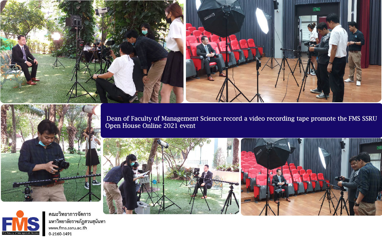 On March 24, 2021 Assistant Professor Dr. Somsak Klaysung, Dean of the Faculty of Management Science Suan Sunandha Rajabhat University Record a video recording tape. Public relations for the FMS SSRU Open House Online 2021 event was conducted by the media production team. Project Operators Operational control by Piti Manat Bunlue, Deputy Dean for Administration at the Faculty of Management Science. Suan Sunandha Rajabhat University.