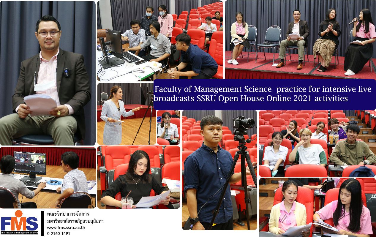 On March 30, 2021 at 2:00 p.m. Faculty of Management Science Suan Sunandha Rajabhat University Conducted live rehearsal of SSRU Open House Online 2021 activities by Assistant Professor Dr. Somsak Klaysung, Dean of the Faculty of Management Science. Along with Prof. Piti Manat Bunlue, Deputy Dean for Administration Bring the team of operators of SSRU Open House Online 2021 activities to practice before the actual broadcast. Which the Faculty of Management Is scheduled to broadcast live on Wednesday March 31, 2021 at 11:30 am on Facebook fanpage: Suan Sunandha Rajabhat University.