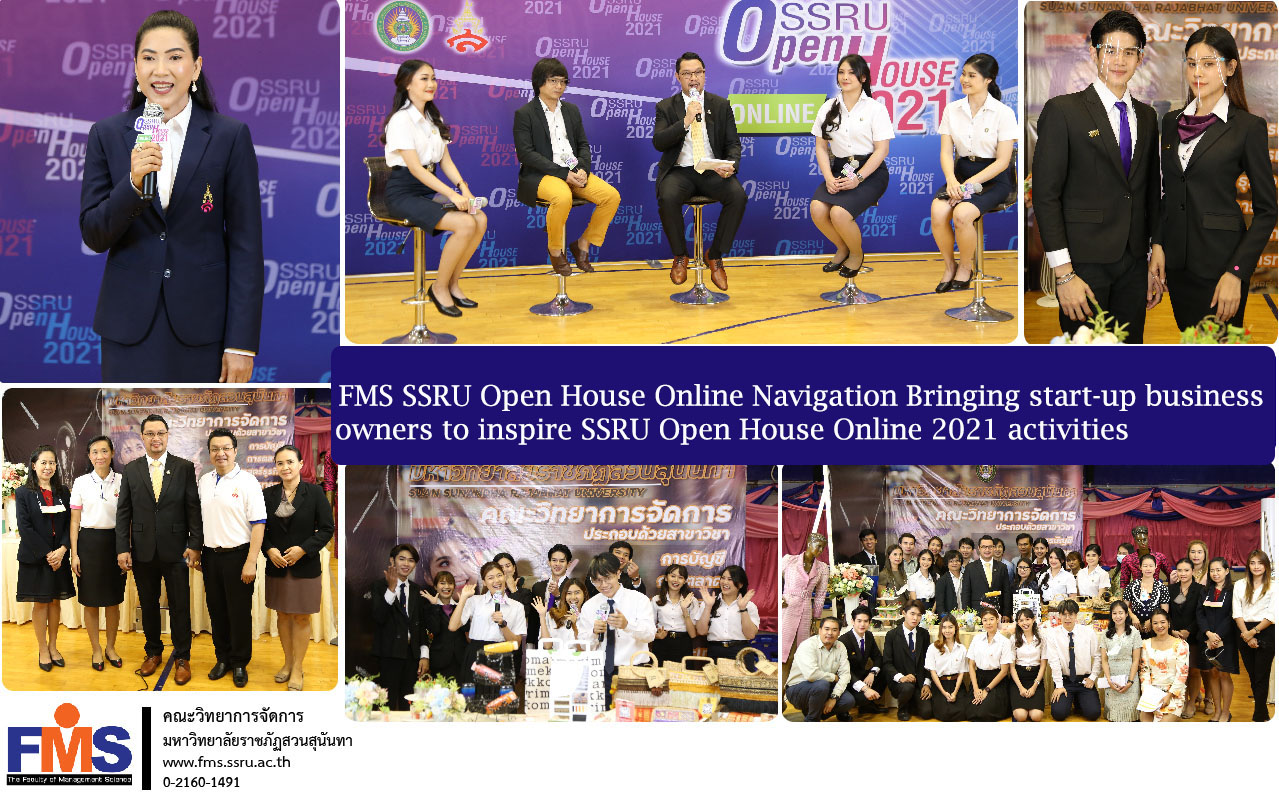 On March 31, 2021 Faculty of Management Science Suan Sunandha Rajabhat University Open home online pilot to welcome students, including parents. To promote the teaching and learning curriculum and recruiting new students Academic Year 2021 in the activities of SSRU Open House Online 2021 by Associate Professor Dr. Chutikarn Srivibul, President of Suan Sunandha Rajabhat University Presided over the event in the form of live live via Facebook fanpage: Suan Sunandha Rajabhat University To reduce the risk and prevent the spread of COVID-19 virus that is currently pandemic.