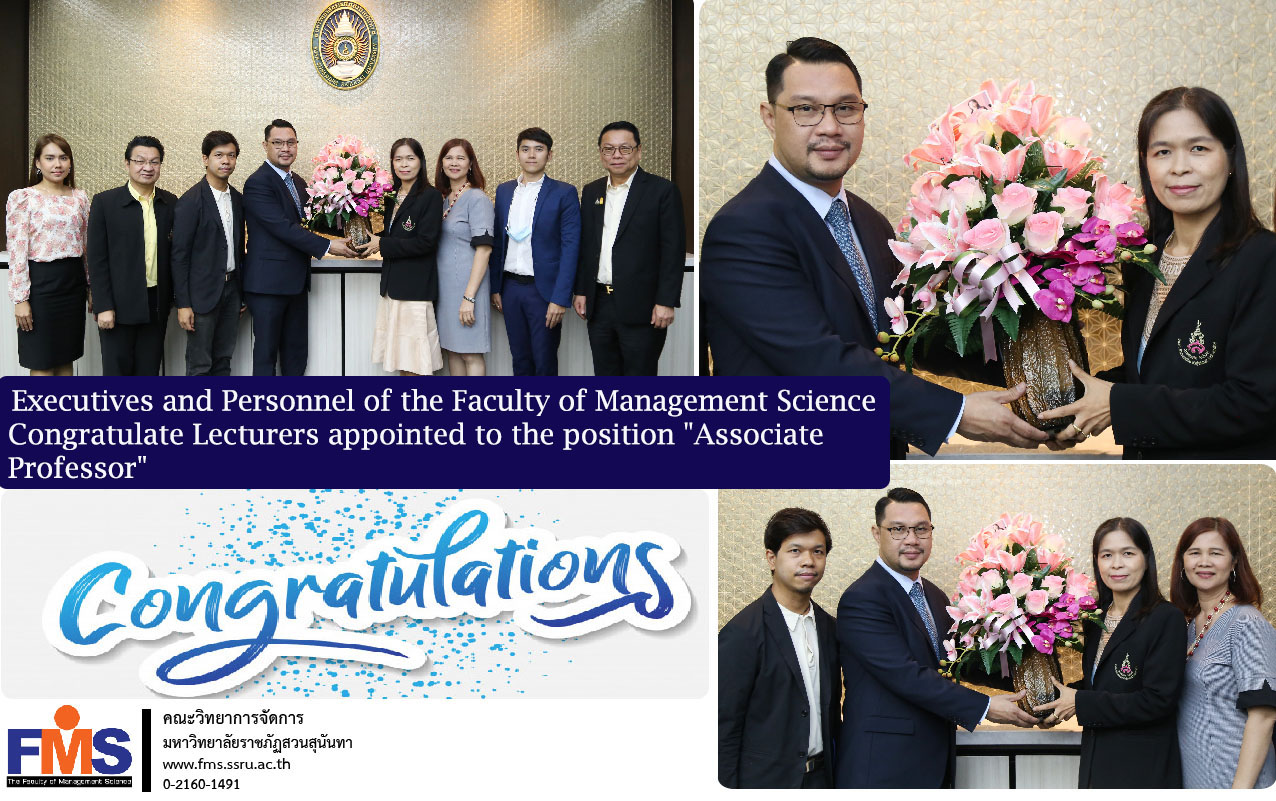 On April 5, 2021 Assistant Professor Dr. Somsak Klaysung, Dean of the Faculty of Management Science. Along with Deputy Dean Head of the Dean's Office And faculty personnel Give a bouquet of flowers to congratulate To Associate Professor Dr. Duangsamon Rungsawanpho On the occasion of being appointed to a higher academic position "Associate Professor" in Business Administration at the University Council Meeting Room, Building 31, 5th Floor.