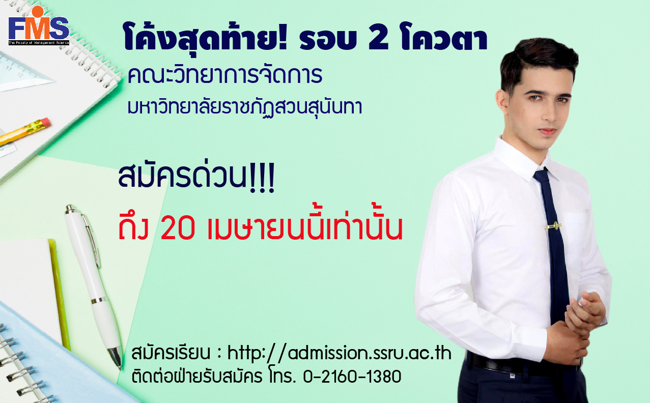 The last bend !!! Faculty of Management Science , Suan Sunandha Rajabhat University Accepting applications for selection of persons to study Bachelor's Degree, Regular Semester 2, Quota for Academic Abilities And charisma Academic year 2021