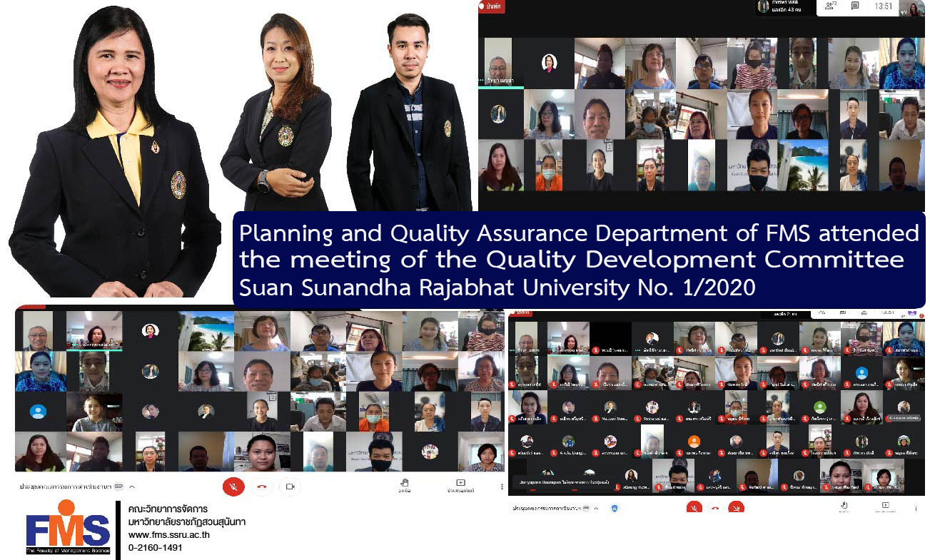 On April 29, 2021 at 1:00 p.m. Planning and Quality Assurance Department Faculty of Management Science led by Assistant Professor Ladda Hiranyawa, Associate Dean for Planning and Quality Assurance. Along with Ms. Parichat Jannuan and Mr. Chatlikhit Nimngam, Planning and Quality Assurance personnel of the Faculty Attended the meeting of the quality development committee Suan Sunandha Rajabhat University Academic Year 2020 1/2020 by Associate Professor Dr. Wittaya Mekkam, Vice President for Planning and Quality Assurance Suan Sunandha Rajabhat University Chair the meeting In the form of an online meeting via the Google meet program.