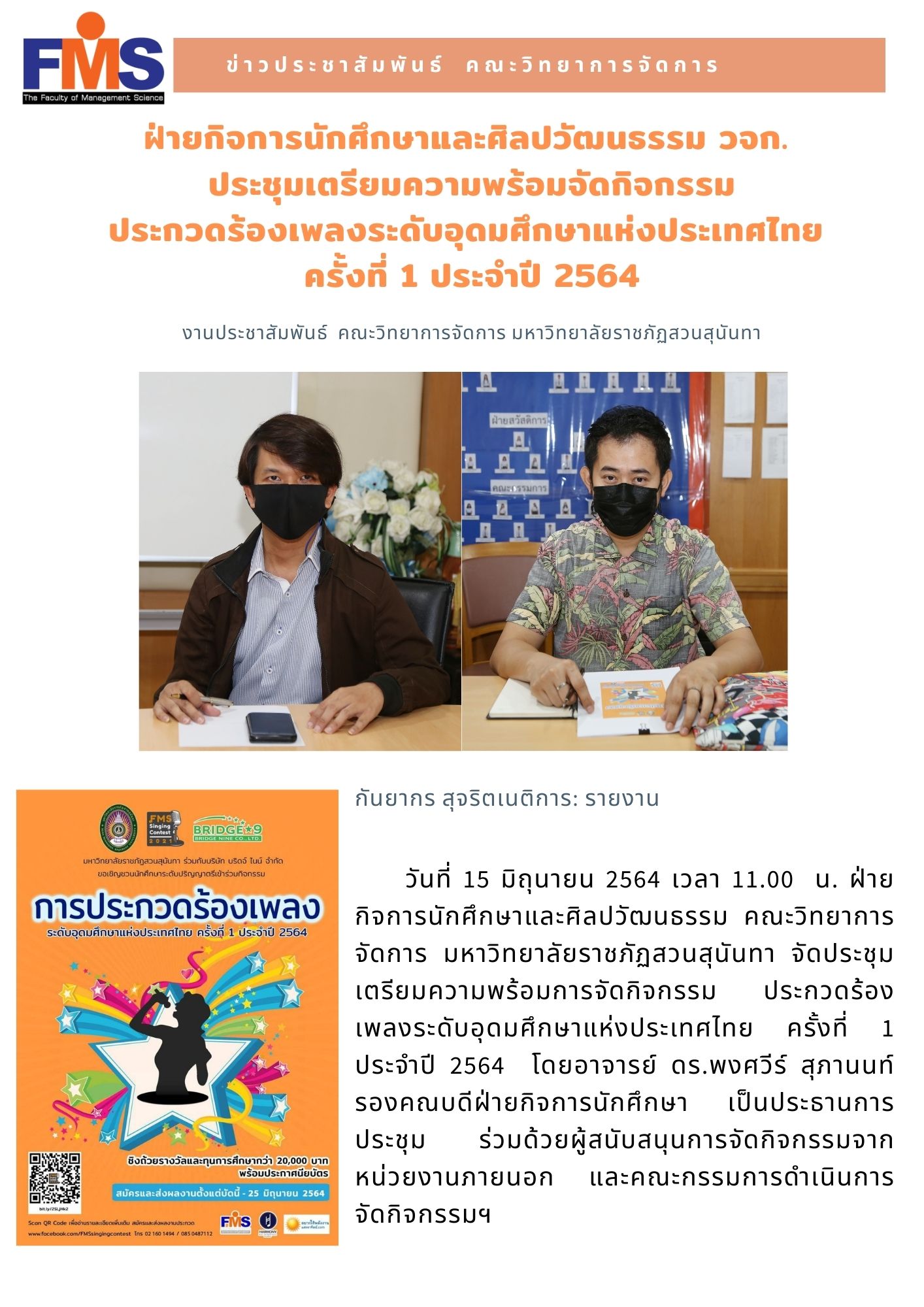 Student Affairs and Arts and Culture Department, FMS held a meeting to prepare for activities The 1st Higher Education Singing Contest of Thailand Year 2021