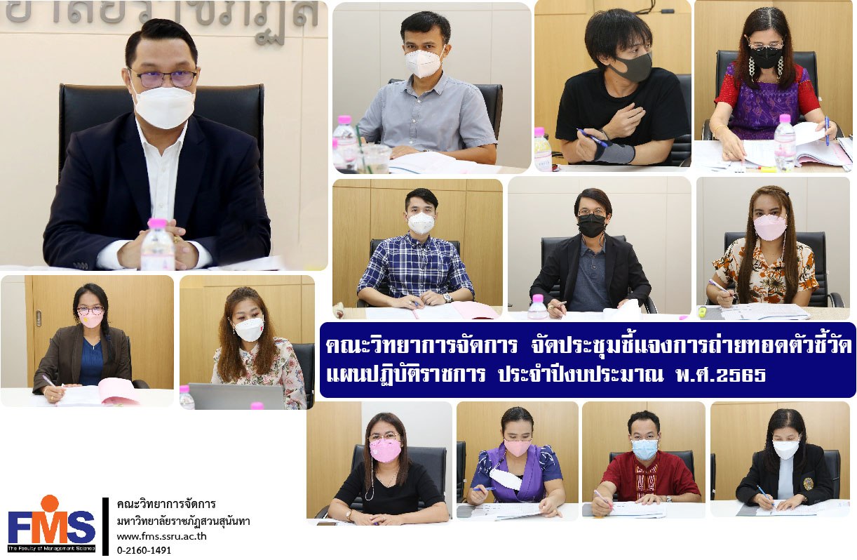 On September 17, 2021 at 11:00 a.m. Faculty of Management Science ,Suan Sunandha Rajabhat University Organize a meeting to clarify the transmission of indicators of the government action plan Fiscal Year 2022 by Assistant Professor Dr. Somsak Klaysung, Dean of the Faculty of Science chair the meeting with Deputy Dean Head of Dean's Office and department head attended the meeting at Ruam Jai Management Conference Room, 1st Floor, Building 56, Faculty of Management Science.