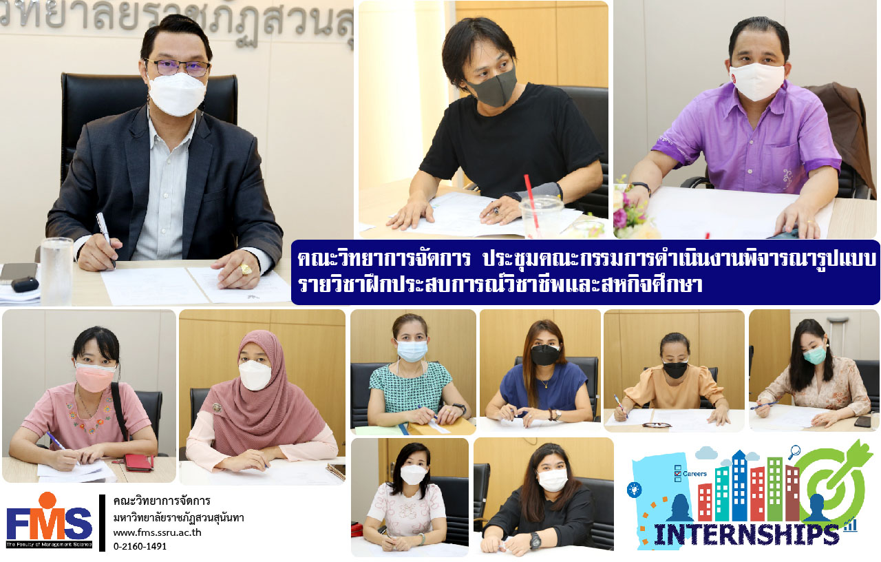 On October 12, 2021 at 2:00 p.m. Faculty of Management Science Organize a meeting of the Implementation Committee to consider the format, method, professional experience training course and cooperative education by Assistant Professor Dr. Somsak Klaysung, Dean of the Faculty of Management Science chair the meeting along with Ajarn Dr. Krishna Chuachainat, Associate Dean for Academic Affairs Participated in explaining the implementation of the consideration of formats, methods, courses for professional experience training and cooperative education to be in the same direction. There is a group leader in business administration. head of department head of department Attended the meeting at Ruam Jai Management Conference Room, Building 56, 1st Floor.