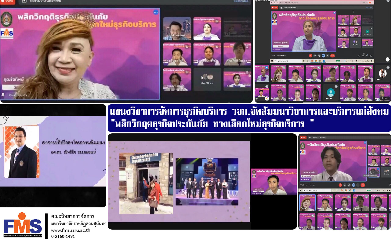 Service business management student, group 002 (group 3), Faculty of Management Science Organized an academic seminar and service to society on the topic "Turn around the insurance business crisis. A new choice for service business" through an online system with the Google Meet program, which was honored by the speaker Khun Jaithip Boonthuan, owner of the company's representative office. Krungthai-AXA Life Insurance Public Company Limited, Nonthaburi Office Lectures provide knowledge and exchange experiences directly with the seminar participants. The speakers gave the essence of this seminar that “Personality and service are very important in the insurance business. Must look good and clean Because personality is the first thing that customers experience. and must be sincere with customers be a good listener Taking care of customers as if they were our relatives.” The seminar achieved its objectives with Assistant Professor Dr. Sittichai Thamsane as a project advisor.