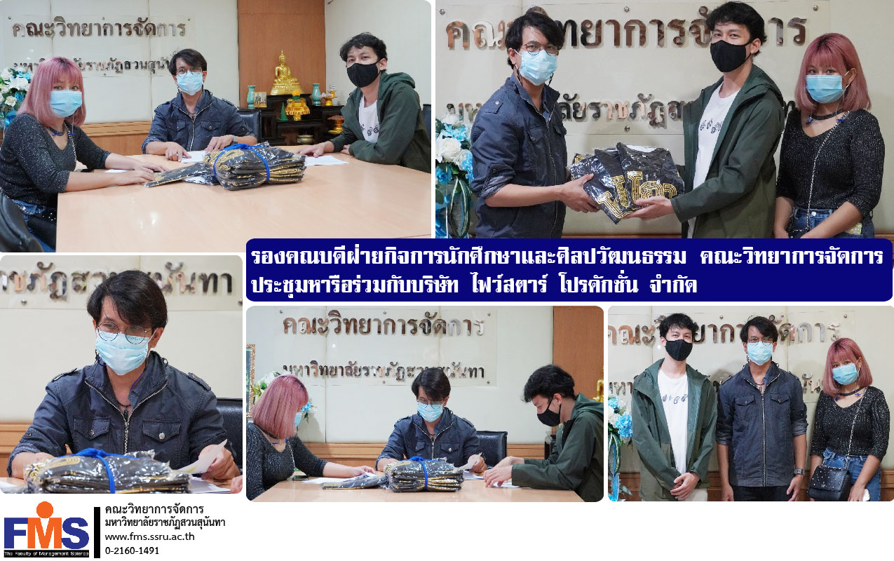 Dr. Pongsawee Supanonth, Deputy Dean for Student Affairs Faculty of Management Science welcomed and had a meeting with representatives from Five Star Production Company Limited on organizing academic activities in entertainment business. And on this occasion, Five Star Production Company Limited gave a souvenir. As a reward for organizing activities for students to participate in such events on November 10, 2021 at the student club meeting room, Building 56, 1st floor.