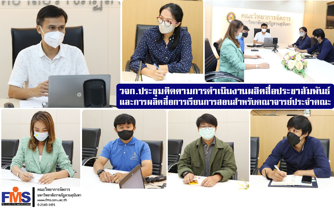 On November 24, 2021 at 3:00 p.m. Mr. Pitimanus Bunlue, Associate Dean for Administration Faculty of Management Science Meeting to follow up on the production of public relations media for the recruitment of new students for the academic year 2022 and the production of teaching materials for faculty members To prepare for the opening of semester 2/2564 with a team of personnel who operate the meeting at the meeting room, Ruam Jai Management, Building 56, 1st floor.