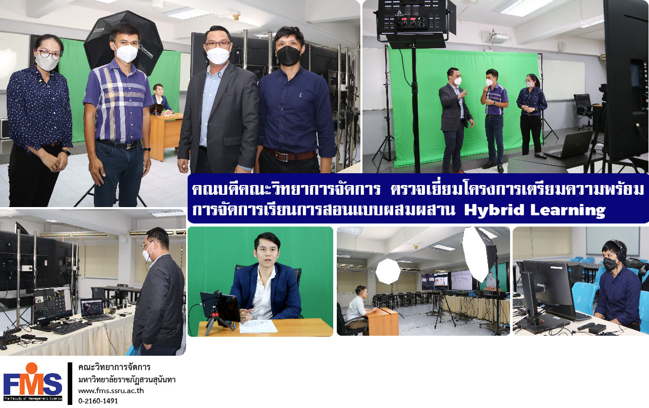 On December 1-2, 2021, Assistant Professor Dr. Somsak Klaysung, Dean of the Faculty of Management Science visited and encouraged the project committee to perform their work Preparing for Hybrid Learning for faculty member by Mr. Pitimanus Bunlue, Associate Dean for Administration and the operation team welcomed and reported the results of the preparation of the said project at the Smart Classroom, Faculty of Management Science.