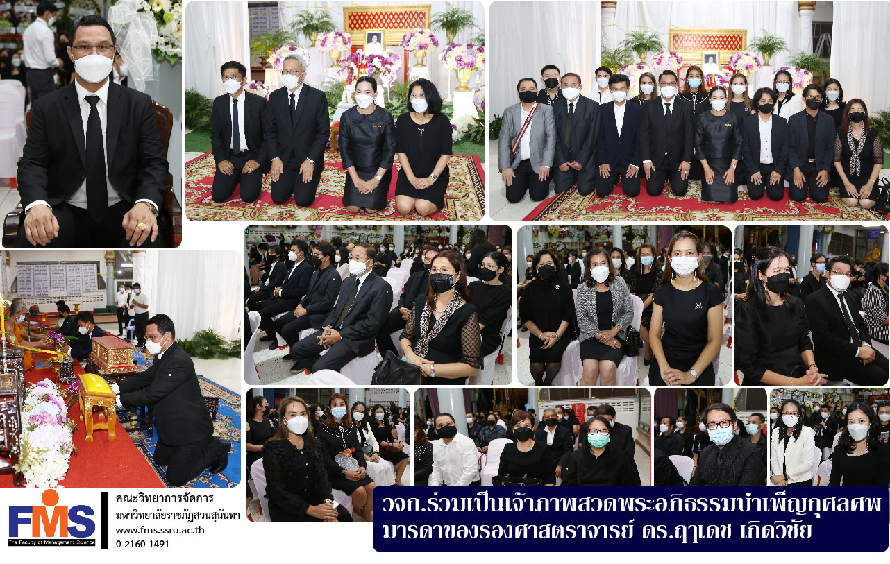 On December 16, 2021, the Faculty of Management Science, Led by Assistant Professor Dr. Somsak Klaysung, Dean, co-hosted the funeral prayer ceremony mother of Associate Professor Dr. Luedech Girdwichai, President of Suan Sunandha Rajabhat University Council with Deputy Dean, Lecturer, Head of Dean's Office and academic support personnel of the Faculty of Management Science participated in the prayer ceremony to make merit at Wat Phai Rong Wua, Song Phi Nong District, Suphanburi Province.