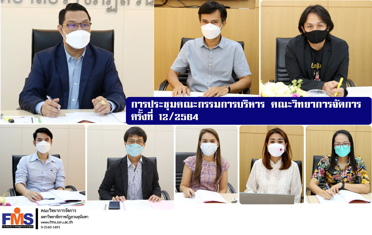 On December 17, 2021 at 09.30 ,Faculty of Management Science , Suan Sunandha Rajabhat University organized the Faculty Executive Committee meeting No. 12 /2564 by Assistant Professor Dr. Somsak Klaysung, Dean of the Faculty of Management Science. chair the meeting along with the management team, Deputy Dean, Head of the Dean's Office Head of Planning and Quality Assurance and head of general administration attended the meeting at the Ruamjai Management Conference Room Faculty of Management Science.