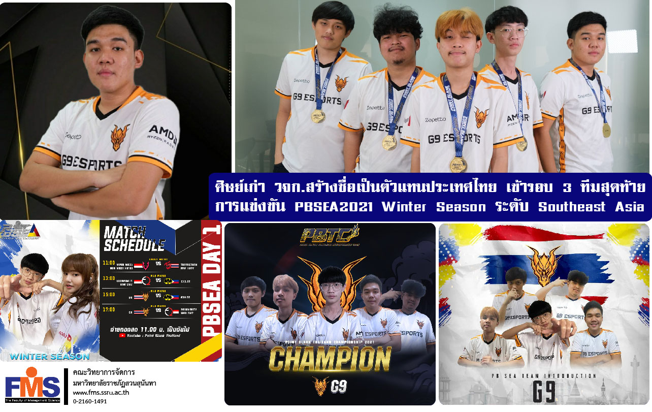 Mr. Patchara Kingkan, alumni of the Faculty of Management Science ,Suan Sunandha Rajabhat University , one of the members of the G9 (Thailand) team participated in the competition and was able to win the Point Blank Thailand Championship 2021, grabbing a prize of 200,000 baht, representing Thailand in the PBSEA2021 Winter Season 3 finals, meeting teams from the Philippines and Indonesia. The competition schedule will be held on December 18, 2021 at 11:00 am onwards and December 19, 2021 at 1:00 pm onwards, live on Youtube: PointBlank Thailand.
