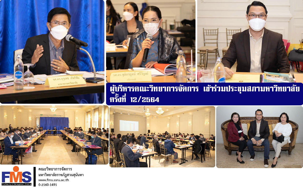 Assistant Professor Dr. Somsak Klaysung, Dean of the Faculty of Management Science, Suan Sunandha Rajabhat University attended the university council meeting No. 12/2564 by Associate Professor Dr. Luedech Girdwichai, President of Suan Sunandha Rajabhat University Council. chair the meeting along with Associate Professor Dr. Chutikarn Sriwiboon, President of Suan Sunandha Rajabhat University Participated in the meeting to reinvent the university (Reinventing University) with the University Executive Committee Attending meetings to find ways to develop the university Analyze strengths and weaknesses to develop potential to be consistent with the direction and focus of the country Between 21-23 December 2021 at Nakhon Ratchasima Province.