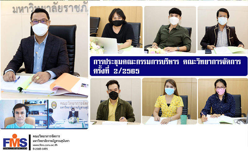 On February 21, 2022 at 9.30 a.m. Faculty of Management Science Suan Sunandha Rajabhat University Organized the Faculty Executive Committee Meeting No. 2 /2022 by Assistant Professor Dr. Somsak Klaysung, Dean of the Faculty of Management Science. chair the meeting along with the management team, Deputy Dean, Head of the Dean's Office and head of general administration Attended the meeting at the Ruamjai Management Conference Room Faculty of Management Science and online meetings via Google Meet.
