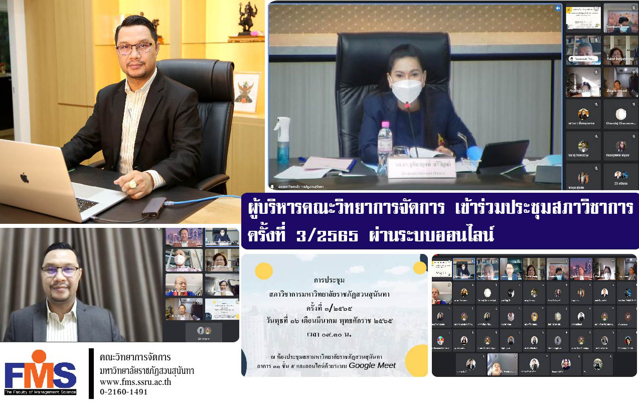 On March 16, 2022 at 09.30 a.m. Assistant Professor Dr. Somsak Klaysung, Dean of the Faculty of Management Science Attended the Academic Council Meeting No. 3/2565 by Associate Professor Dr. Chutikarn Sriwiboon, President of Suan Sunandha Rajabhat University chair the meeting in the form of an online meeting with the Google Meet program.