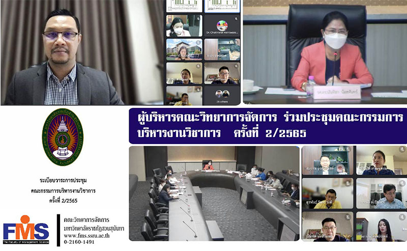 On March 17, 2022, Assistant Professor Dr. Somsak Klaysung, Dean of the Faculty of Management Science Attended the Academic Administration Committee Meeting No. 2 /2022 by Associate Professor Dr. Nantiya Noichan, Vice President for Academic Affairs Suan Sunandha Rajabhat University chair the meeting There are university administrators, faculties, departments, campuses, education centers. Attend the meeting at the University Council Meeting Room, Building 31, Floor 5 and online meeting with Google Meet program.