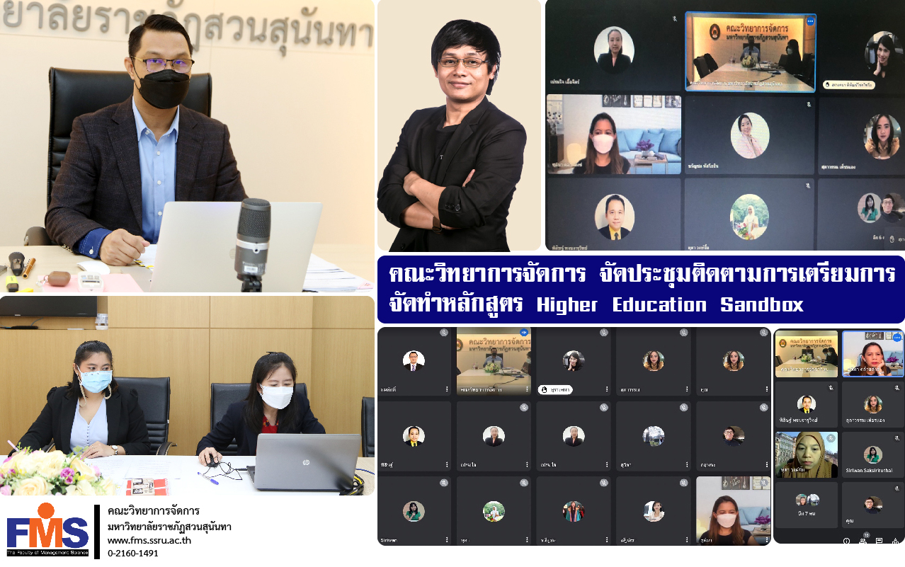 On March 24, 2022, Faculty of Management Science Suan Sunandha Rajabhat University Organized a meeting of group leaders in business administration head of department and the head of the field No. 2/2565 by Assistant Professor Dr. Somsak Klaysung, Dean of the Faculty of Management Science chair the meeting along with Dr. Krishna Chuachainat, Associate Dean for Academic Affairs To follow up on requests to open educational courses that are different from the Higher Education Sandbox standards and other related agendas There is a group leader in business administration. head of department and heads of departments attend the meeting in the form of an online meeting through the Google Meet program.