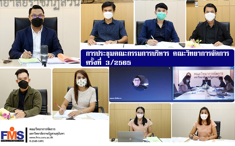 On March 25, 2022 at 09.30 a.m. Faculty of Management Science Suan Sunandha Rajabhat University Organized the 3rd meeting of the Faculty Executive Committee /2565 by Assistant Professor Dr. Somsak Klaysung, Dean of the Faculty of Management Science. chair the meeting along with the management team, Deputy Dean, Head of the Dean's Office Head of General Administration and Head of Planning and Quality Assurance Attended the meeting at the Ruamjai Management Conference Room Faculty of Management Science and online meetings via Google Meet.