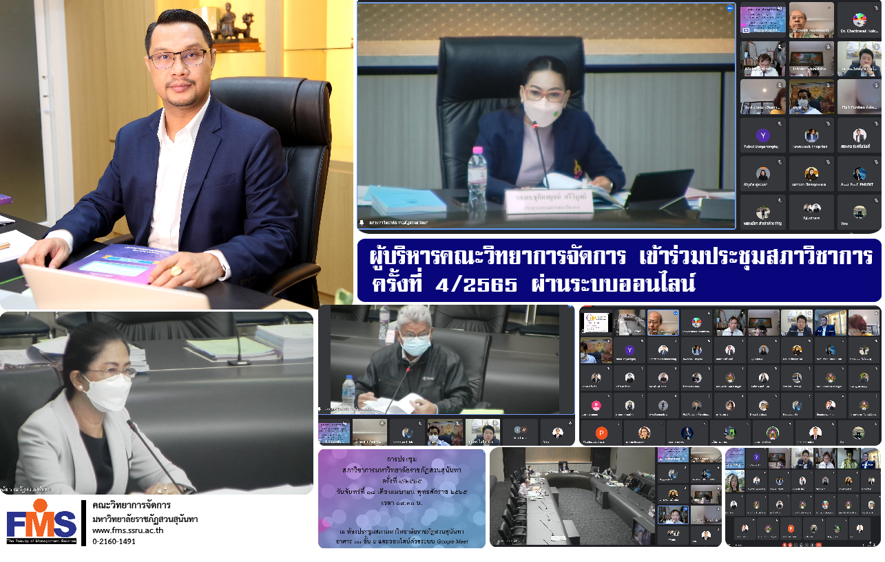 On April 18, 2022 at 09.30 a.m., Assistant Professor Dr. Somsak Klaysung, Dean of the Faculty of Management Science attended the Academic Council Meeting No. 4/2565 by Associate Professor Dr. Chutikarn Sriwiboon, President of Suan Sunandha Rajabhat University chair the meeting along with Associate Professor Dr. Nantiya Noichan, Vice President for Academic Affairs in the form of an online meeting with the Google Meet program.
