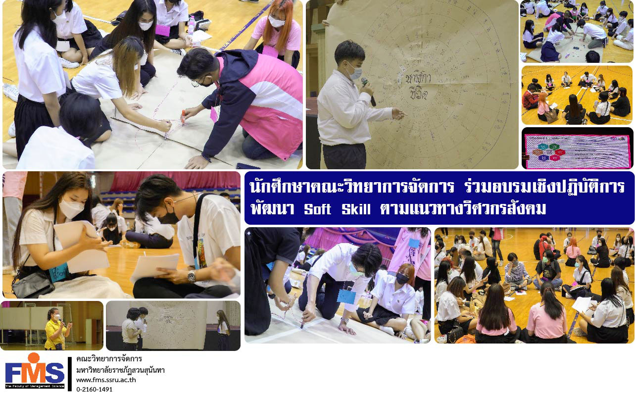 On May 9, 2022, The students from the Faculty of Management Science, comprising student club leaders and student representatives in each field/discipline, participated in the Soft Skill Development Workshop in accordance with the Social Engineers guidelines. Organized by the Student Development Division Suan Sunandha Rajabhat University to create Soft Skills in analytical thinking and problem solving Knowledge communication for problem solving Collaborating with others without conflict and creative thinking and innovation as well as having skills that are essential to the modern world society The students participated in the activities brainstorming and other related activities at Suan Sunandha Health and Sports Center Building, 4th floor, Suan Sunandha Rajabhat University.