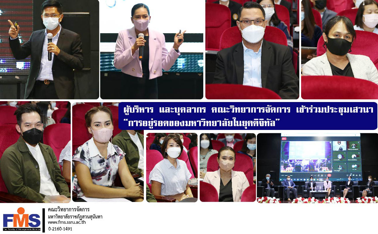 On June 9, 2022, Assistant Professor Dr. Somsak Klaysung, Dean of Faculty of Management Science, Ajarn Dr. Kritsana Churechainat, Associate Dean for Academic Affairs, Ajarn Dr. Itthipoom Phromma, Associate Dean for Planning and Quality Assurance. Ms. Jinjuta Srirao, Head of the Dean's Office Ms. Sulawan Petcharang, Head of Education Services and Ms. Parichat Channuan, Head of Planning and Quality Assurance Department. Faculty of Management Science attend the seminar "University survival in the digital age" by Associate Professor Dr. Chutikarn Sriwiboon, President of Suan Sunandha Rajabhat University presided over the opening remarks and giving a special lecture "Student admission direction and building cooperation with enterprises" and a special lecture by Associate Professor Dr. Luedech Girdwichai, President of Suan Sunandha Rajabhat University Council on "Policies and Strategies for Developing Universities in the Digital Era" and a panel discussion on "Building a Network of Cooperate with external agencies.” There are administrators of faculty, departments, education centers. Attended the meeting at Meeting Room 1212 College of Logistics and Supply Chain Nakhon Pathom Province Campus and online meetings through the Google Meet program.