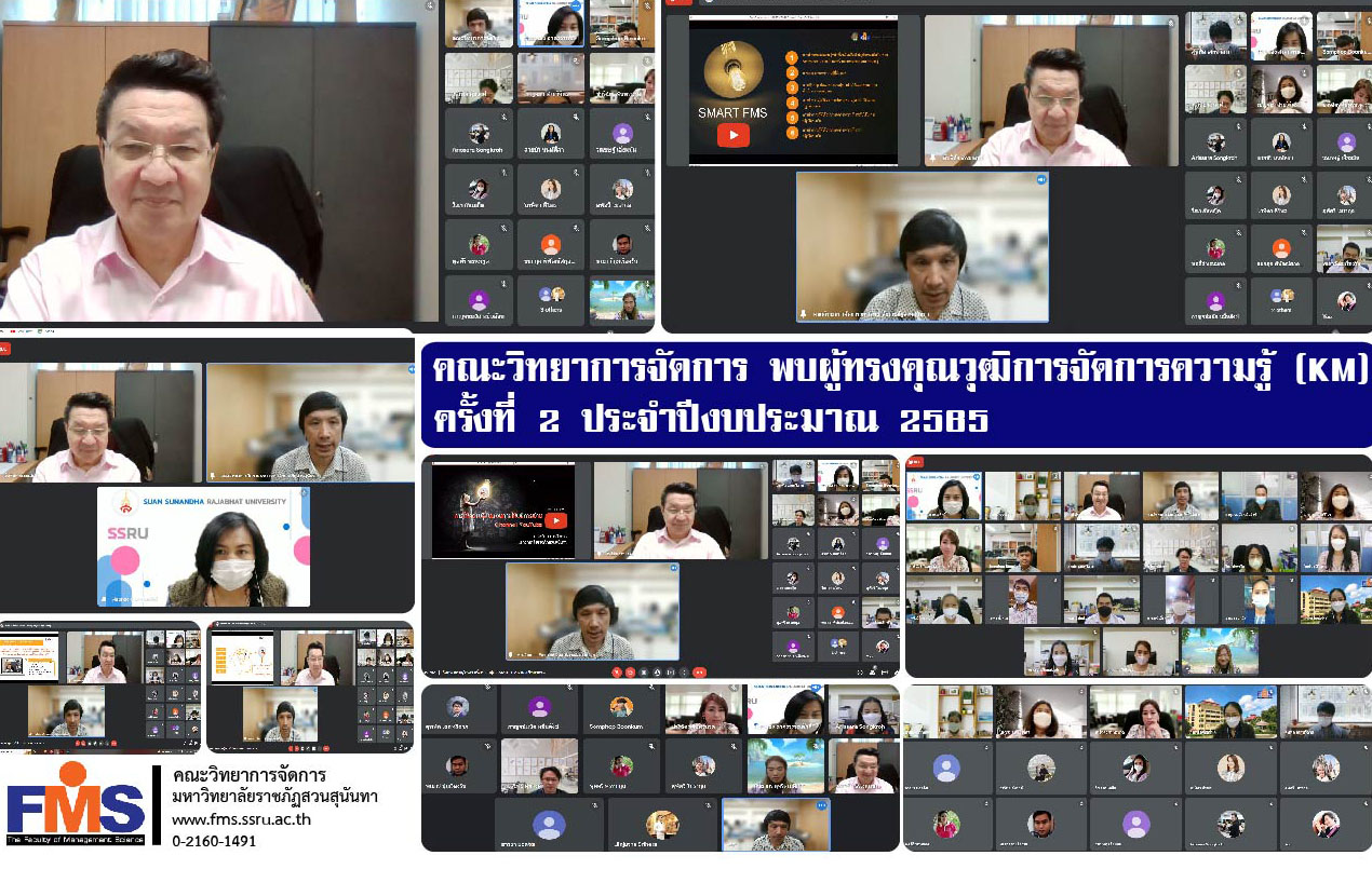 On June 28, 2022, SMART FMS group member, Faculty of Management Science Suan Sunandha Rajabhat University The 2nd Knowledge Management (KM) Group Meeting of the Fiscal Year 2022, along with suggestions from Asst. Prof. Dr. Sittichai Thammasane, qualified person By presenting a report on the progress of the group's operations through the Google Meet program.