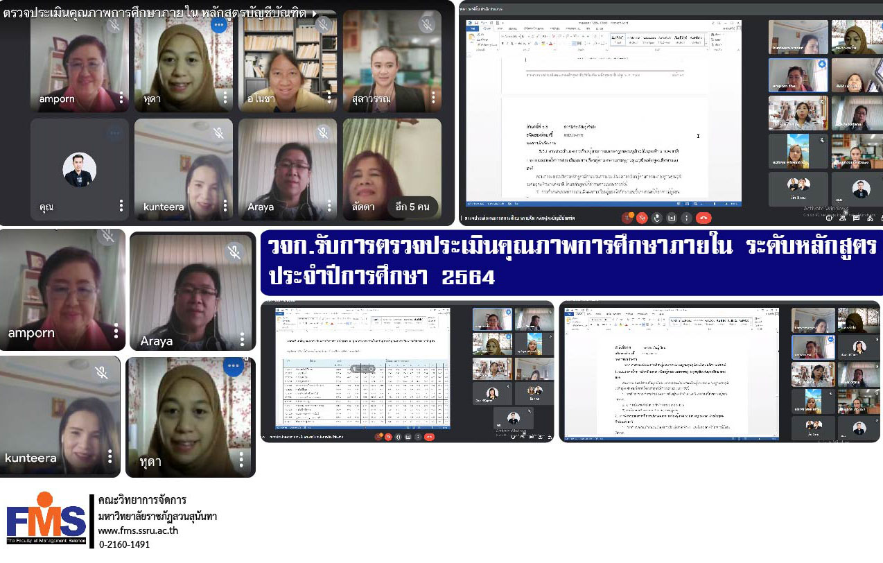 On July 6, 2022 Planning and Quality Assurance Department Faculty of Management Science organizes "Internal Educational Quality Assessment Project course level for the academic year 2021" in this assessment. Honored by a committee of experts who have been trained by the auditors from the Office of the Higher Education Commission (OHEC) and who have knowledge and expertise in quality assurance criteria At the course level very well, namely Assistant Professor Amporn Thiengtrakul, Chairman of the Board. Assistant Professor Kunthira Asasri, Member, Assistant Professor Arayarat Chareesaen, Member and Ms. Sulawan Petcharang, Secretary. Accounting which has a full-time course teacher take an interview in the form of an online meeting with Zoom Meeting program.
