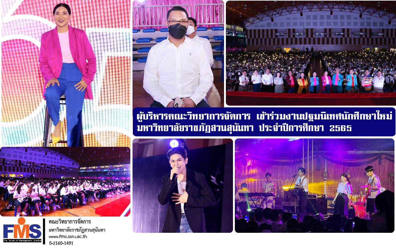 On July 11, 2022, Assistant Professor Dr. Somsak Klaysung, Dean of the Faculty of Management Science Attending the new student orientation Suan Sunandha Rajabhat University for the academic year 2022 by Associate Professor Dr. Chutikarn Sriwiboon, President of Suan Sunandha Rajabhat University presided over the opening of the new student orientation event along with Vice-Rectors from all departments joined to welcome and give sermons to new students at the Health and Sports Center, 4th floor, Suan Sunandha Rajabhat University.
