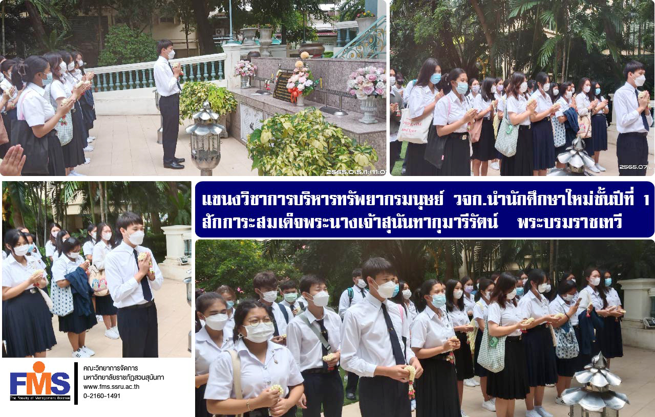 Human Resources Management Faculty of Management Science, Suan Sunandha Rajabhat University Bring new students in the first year to pay homage to Her Majesty Queen Sunandha Kumariratana Her Royal Highness Princess Maha Chakri Sirindhorn at the Castle Court of Her Majesty Queen Sunandha Kumariratana Phra Borommaratchathewi for new students got to know the sacred things that are the symbols of the university which is revered as the center and the heart of Students and staff of Suan Sunandha Including vowing to study hard throughout the course of study in the name of "Son of Phra Nang".