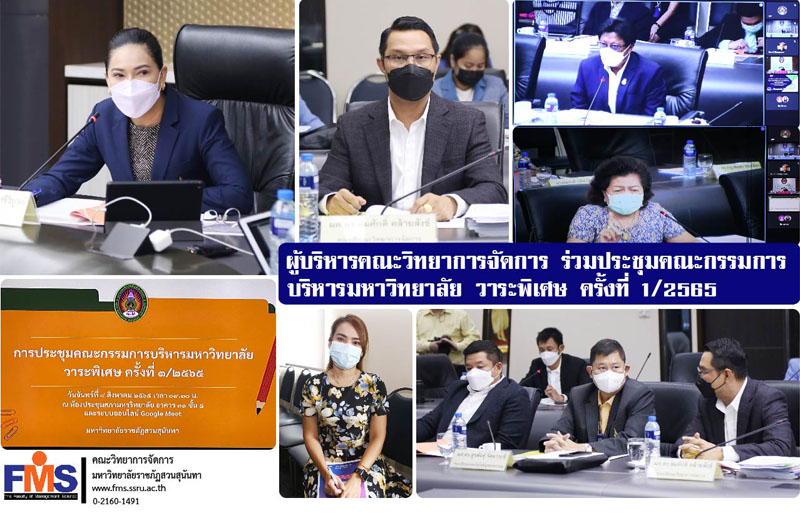 On August 8, 2022 at 09:30, Assistant Professor Dr. Somsak Klaysung, Dean of the Faculty of Management Science together with Ms. Jinjuta Srihera, Head of the Office of the Dean of the Faculty of Management Science Attended the University Administrative Committee meeting, special agenda No. 1/2022, with Associate Professor Dr. Chutikarn Sriwiboon, President of Suan Sunandha Rajabhat University. chair the meeting There are university administrators, faculties, departments, campuses, education centers. Attend the meeting at the University Council Meeting Room, Building 31, Floor 5 and online meeting with Google Meet program.