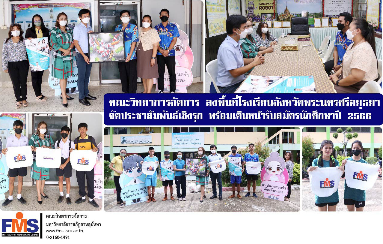 On August 26, 2022, Faculty of Management Science Suan Sunandha Rajabhat University led by Mr. Pitimanas Bunlue, Deputy Dean for Administration Faculty of Management Science along with Dr. Ladaporn Phithak, a lecturer in the field of marketing and personnel team Field visits to schools in Phra Nakhon Si Ayutthaya Province, including Bang Pa-In School and Tha Chang Wittayakhom School Implementing proactive public relations projects According to the policy of focusing on proactive public relations of Assistant Professor Dr. Somsak Klaysung, Dean of the Faculty of Management Science. in information publicity Guidance on further studies in the Faculty of Management Science Suan Sunandha Rajabhat University To prepare for the new student recruitment year 2023, which has a warm welcome from teachers and students.