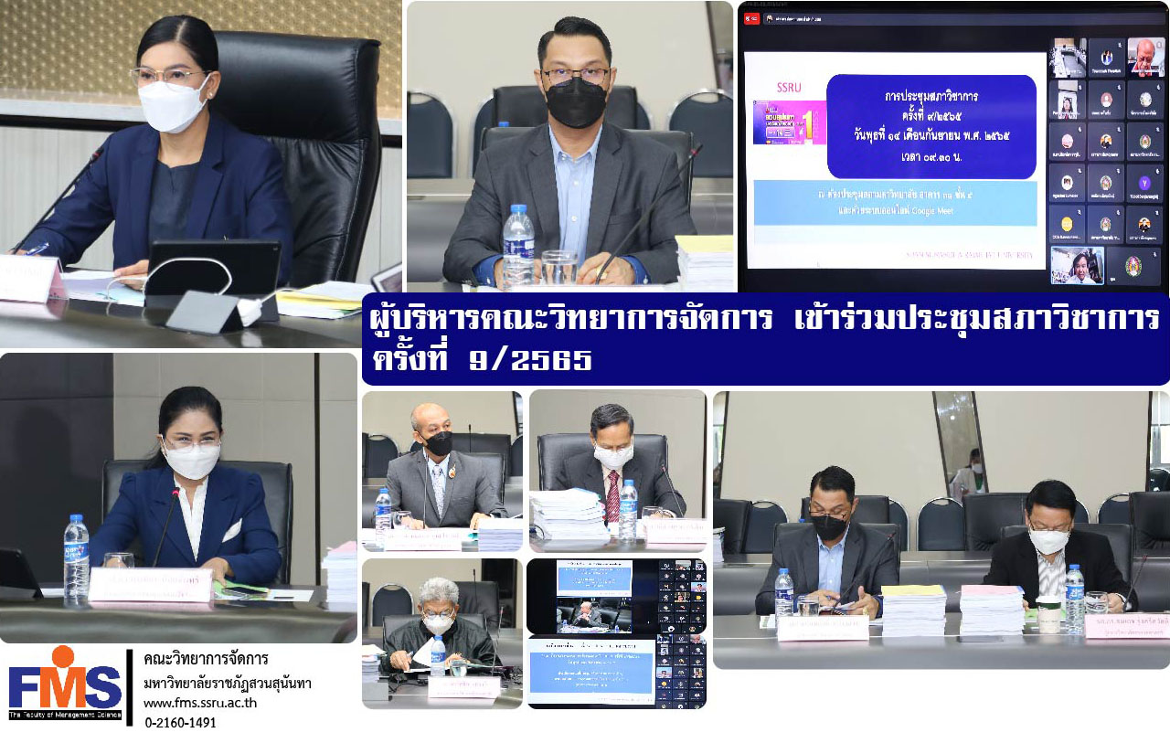 On September 14, 2022 at 09.30, Assistant Professor Dr. Somsak Klaysung, Dean of the Faculty of Management Science Attended the Academic Council Meeting No. 9/2565 by Associate Professor Dr. Chutikarn Sriwiboon, President of Suan Sunandha Rajabhat University chair the meeting along with Associate Professor Dr. Nantiya Noichan, Vice President for Academic Affairs at the University Council Meeting Room, Building 31, 5th floor and online meeting via Google Meet program.