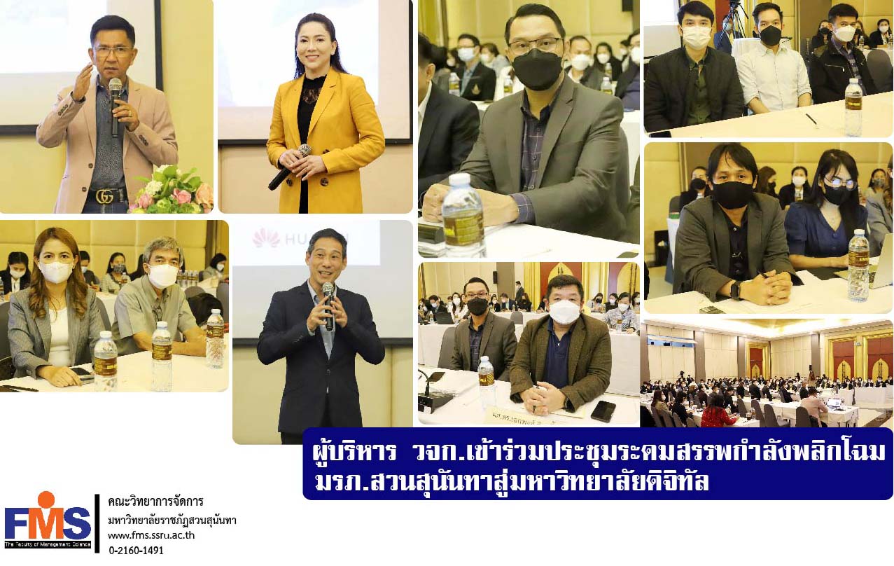 On September 26, 2022, Assistant Professor Dr. Somsak Klaysung, Dean of the Faculty of Management Science along with Associate Dean, Teacher and Head of Dean's Office Participated in the workshop transforming Suan Sunandha Rajabhat University to a digital university with an associate professor Dr. Chutikarn Sriwiboon, President of Suan Sunandha Rajabhat University presided over the opening remarks of the meeting with a special lecture on the topic of "Suan Sunandha under the transformation policy" and was honored by Associate Professor Dr. Luedech Girdwichai, President of Suan Sunandha Rajabhat University Council gave a special lecture on the topic "Reflecting the current picture. on the principles and philosophy to transform the university" and Mr.Patrick Low Beng Chee gave a special lecture on the topic "Hybrid Classroom" with executives and related people attending the meeting. The meeting was scheduled to be held during 26-28 September 2022 at Chada Thong Meeting Room, T Chada Resort by the Sea, Pattaya, Chonburi.