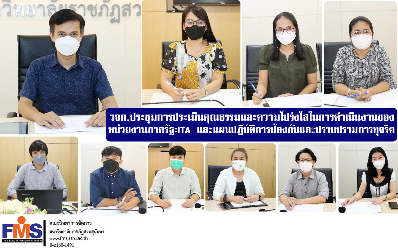 On October 19, 2022 at 9:30 a.m. Faculty of Management Sciences, Suan Sunandha Rajabhat University organized a meeting to assess the virtue and transparency in the operation of government agencies: ITA and the anti-corruption action plan for the fiscal year 2023 in order to achieve the set indicator goals. by Mr. Pitimanus Bunlue, Deputy Dean for Administration presided over the meeting Head of the Dean's Office Department heads and persons responsible for relevant indicators Attended the meeting at Ruamjai Management Meeting Room 1, Faculty of Management Sciences.
