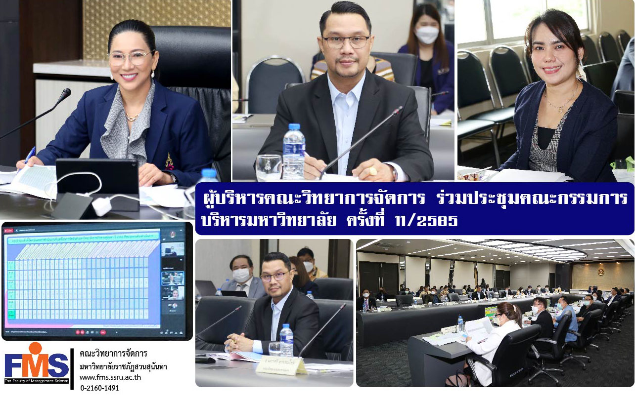 On November 7, 2022 at 9:30 a.m., Assistant Professor Dr. Somsak Klaysung, Dean of the Faculty of Management Science together with Ms. Jinjutha Srirao, Head of the Dean's Office, Faculty of Management Science attended the University Executive Committee Meeting No. 11/2022 with Associate Professor Dr. Chutikan Sriwiboon, President of Suan Sunandha Rajabhat University presided over the meeting There are university administrators, faculties, departments, campuses, and educational centers. Join the meeting at the university council room, Building 31, 5th floor and online meeting with the Google Meet program.