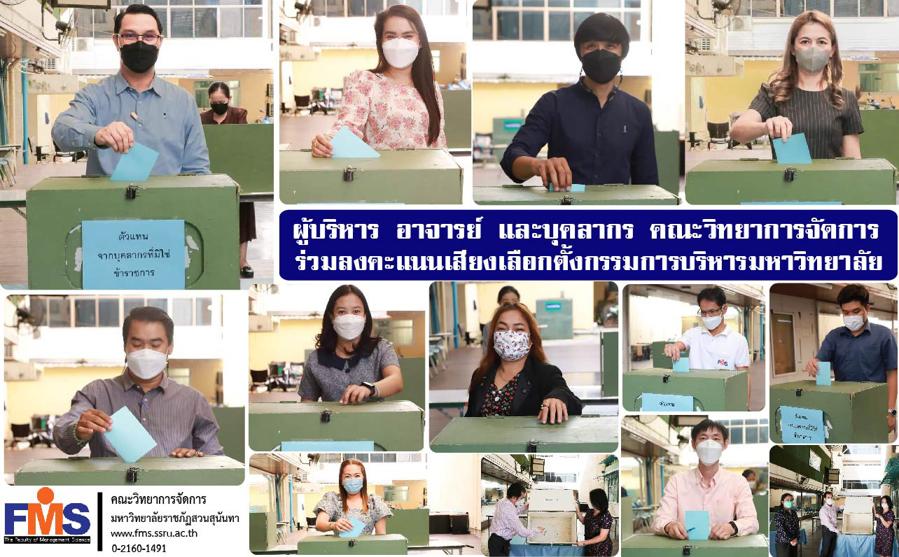 On December 8, 2022 Executives of the Faculty of Management Sciences led by Assistant Professor Dr. Somsak Klaysung, Dean of the Faculty of Management Science along with teacher Head of the Dean's Office and academic support personnel Participated in voting for the election of the university's executive committee from representatives of civil servants. and from representatives of university personnel who are not civil servants organized by the Division of Personnel Management at the College of Innovation and Management activity area.