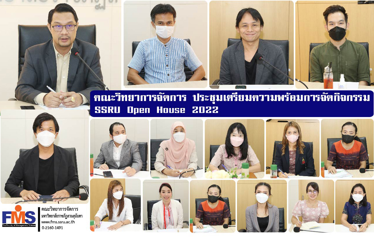 On December 9, 2022, the Faculty of Management Science,Suan Sunandha Rajabhat University organize a meeting to prepare for the SSRU Open House 2022 event at the Ruamjai Management Conference Room. with Assistant Professor Dr. Somsak Klaysung, Dean of the Faculty of Management Science presided over the meeting along with the Vice Dean Group Head of Business Administration Program Head of Department Head of Department and the relevant activity committee to plan the implementation of the SSRU Open House 2022 event that will be held on December 20-21, 2022 at the activity area of the Faculty of Management Sciences. and the activity area in front of the Faculty of Science and Technology Suan Sunandha Rajabhat University.