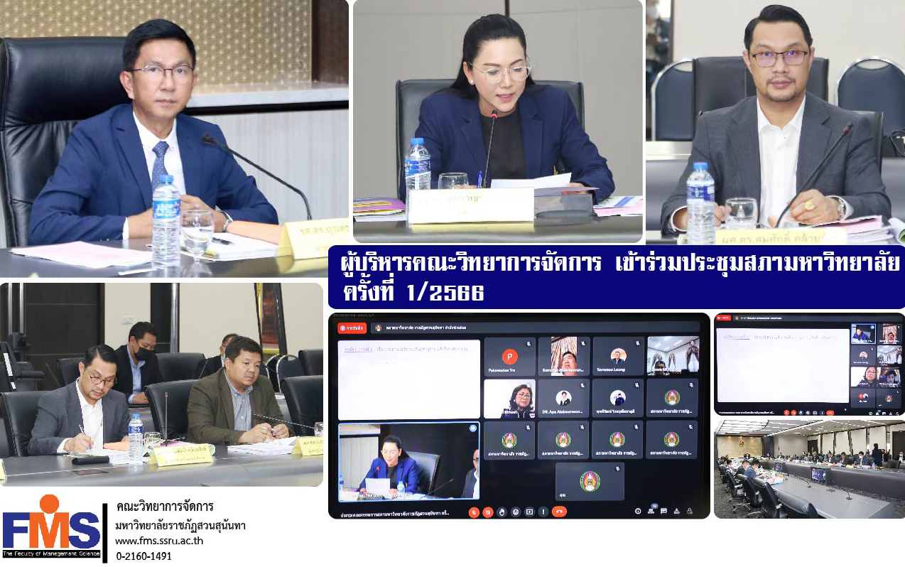 On 1 February 2023, at 1:30 p.m., Assistant Professor Dr. Somsak Klaysung, Dean of the Faculty of Management Science attended the University Council Meeting No. 1/2023 by Associate Professor Dr. Luedech Girdwichai, Council President of Suan Sunandha Rajabhat University. presided over the meeting along with Associate Professor Dr. Chutikan Sriwiboon, President of Suan Sunandha Rajabhat University There were members of the University Council attending the meeting to consider, approve and suggest issues for consideration in various agendas at the University Council meeting room, Building 31, 5th floor, along with online meetings (Google Meet).