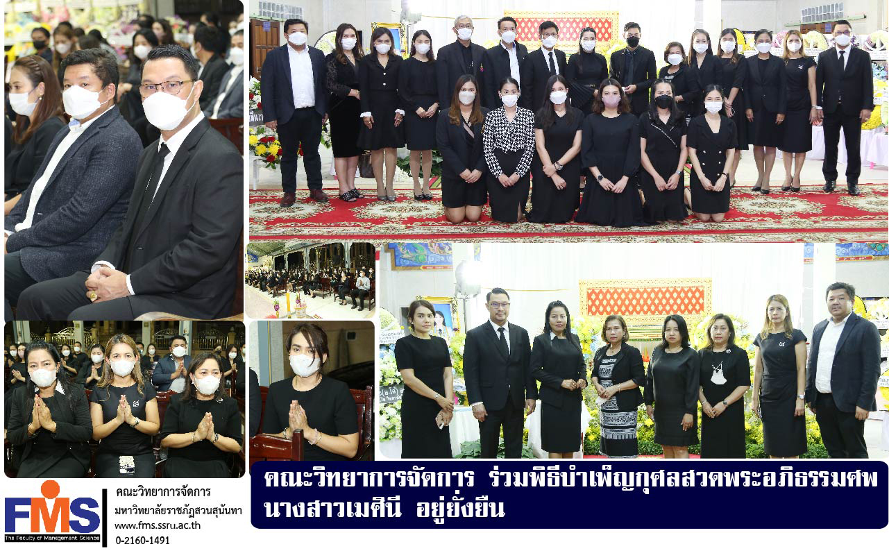 On the evening of February 14, 2023 at 7:30 p.m., the Faculty of Management Science led by Assistant Professor Dr. Somsak Klaysung, Dean of the Faculty of Management Science along with teacher Head of the Dean's Office and academic support personnel Participated in a merit-making ceremony for the funeral of Ms. Mesinee Yuyuenyuen, Secretariat Personnel, Central Office of the President, at Pavilion 1, Khomnaram Temple (Wat in Bang Kaeo), Bang Kaeo Sub-district, Ban Laem District. Phetchaburi Province.